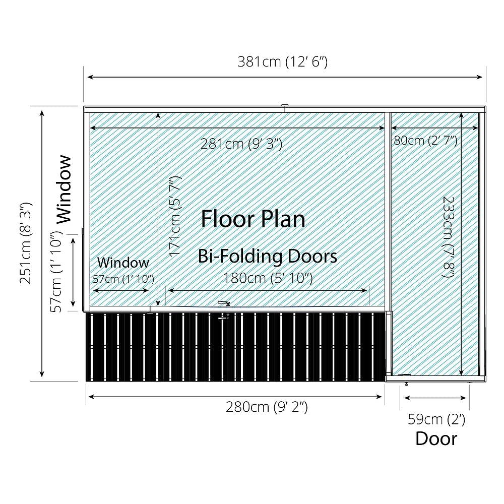 【Home&Garden】12x8 Wooden Garden Summerhouse with Side Shed, Garden Room, Sunroom, Outdoor Storage