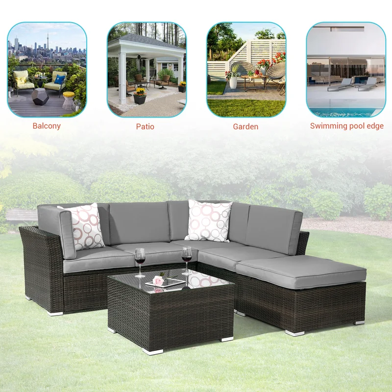 Polyethylene (PE) Wicker 5 - Person Seating Group with Cushions