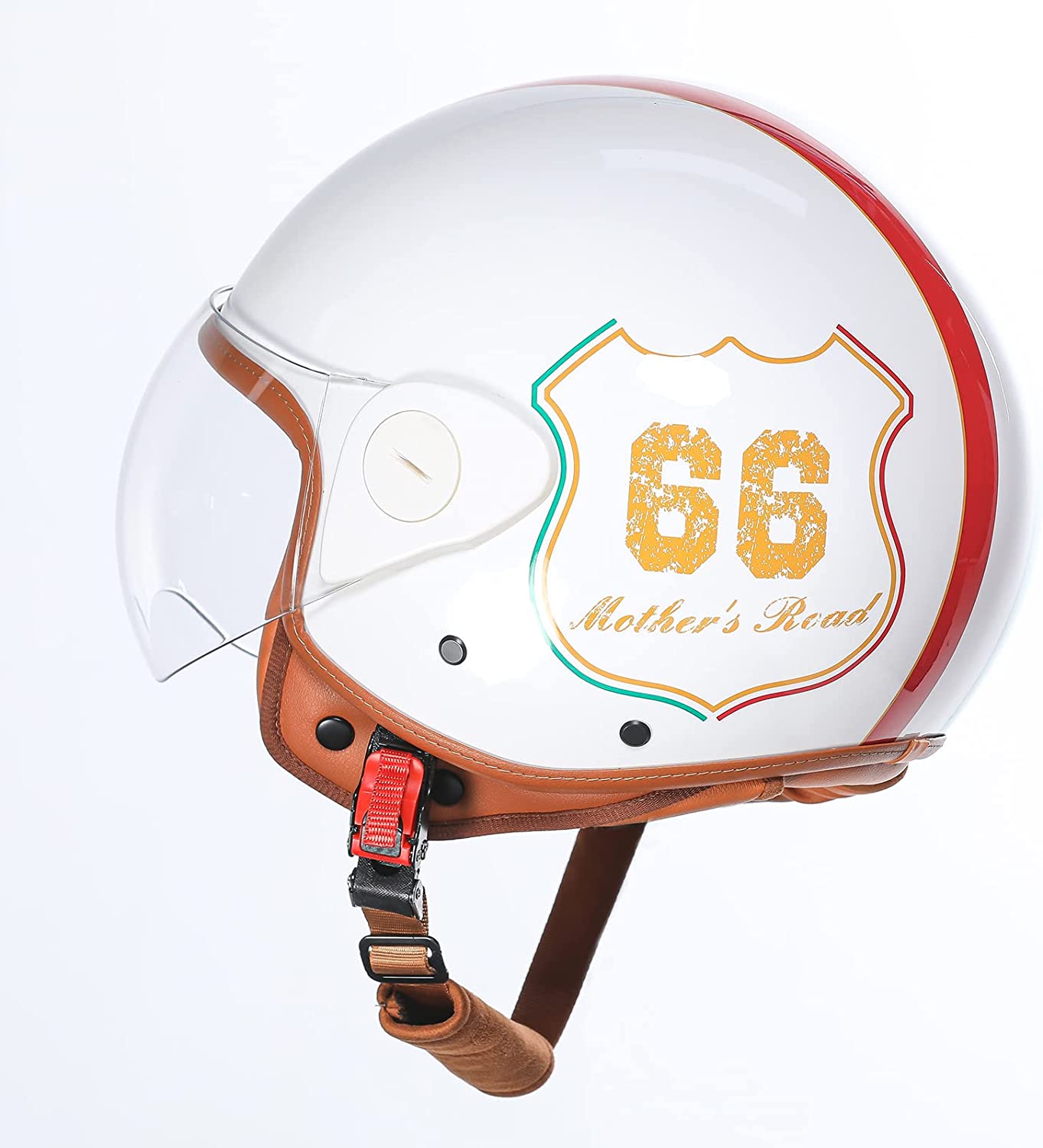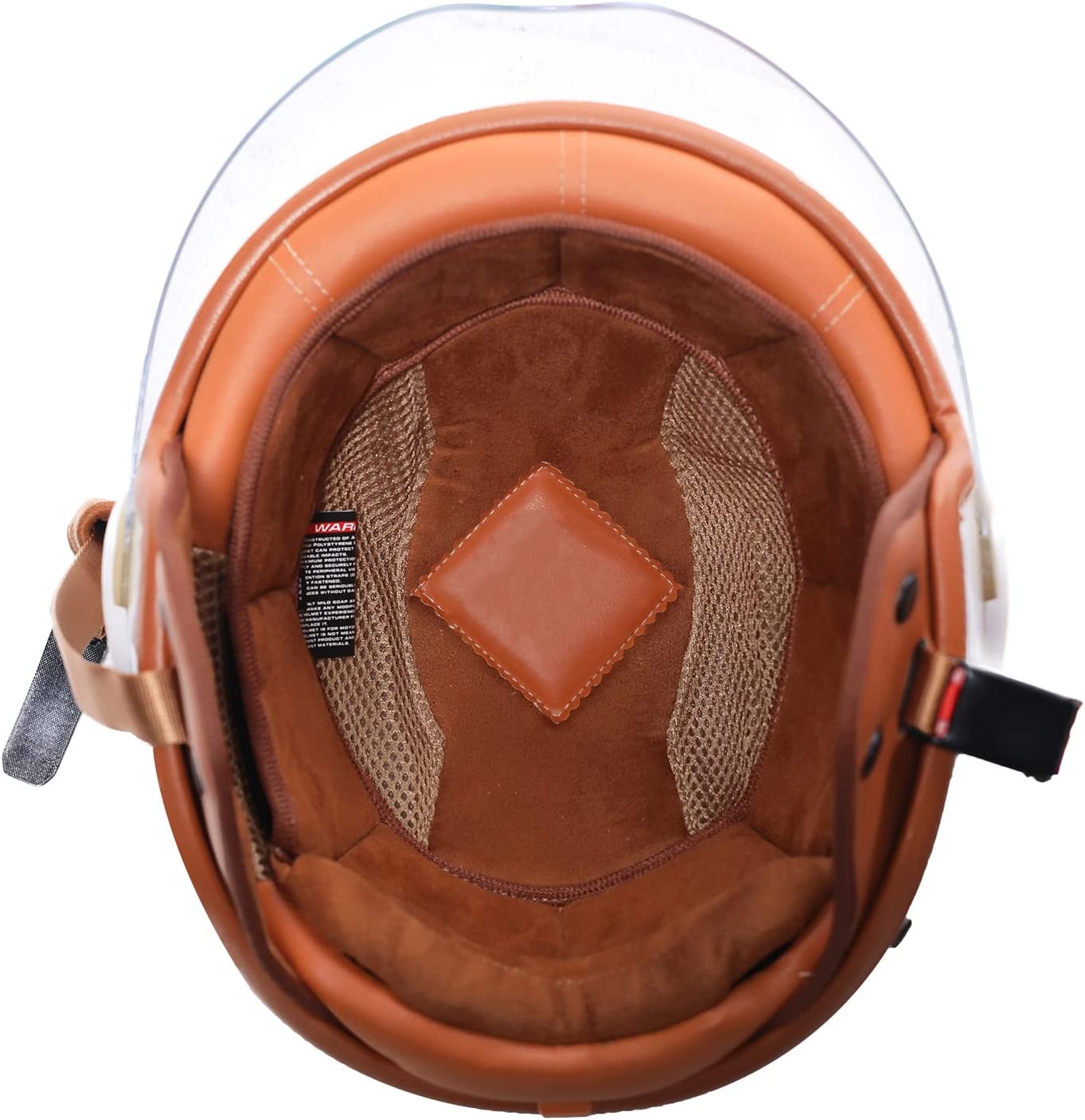 Vintage 3/4 Open Face Motorcycle Helmet,with Visor Retro Motorcycle Half Face Helmet DOT Approved Adults Motorcycle Half Helmet Cruiser Moped Scooter Bike ATV Moped Helmets