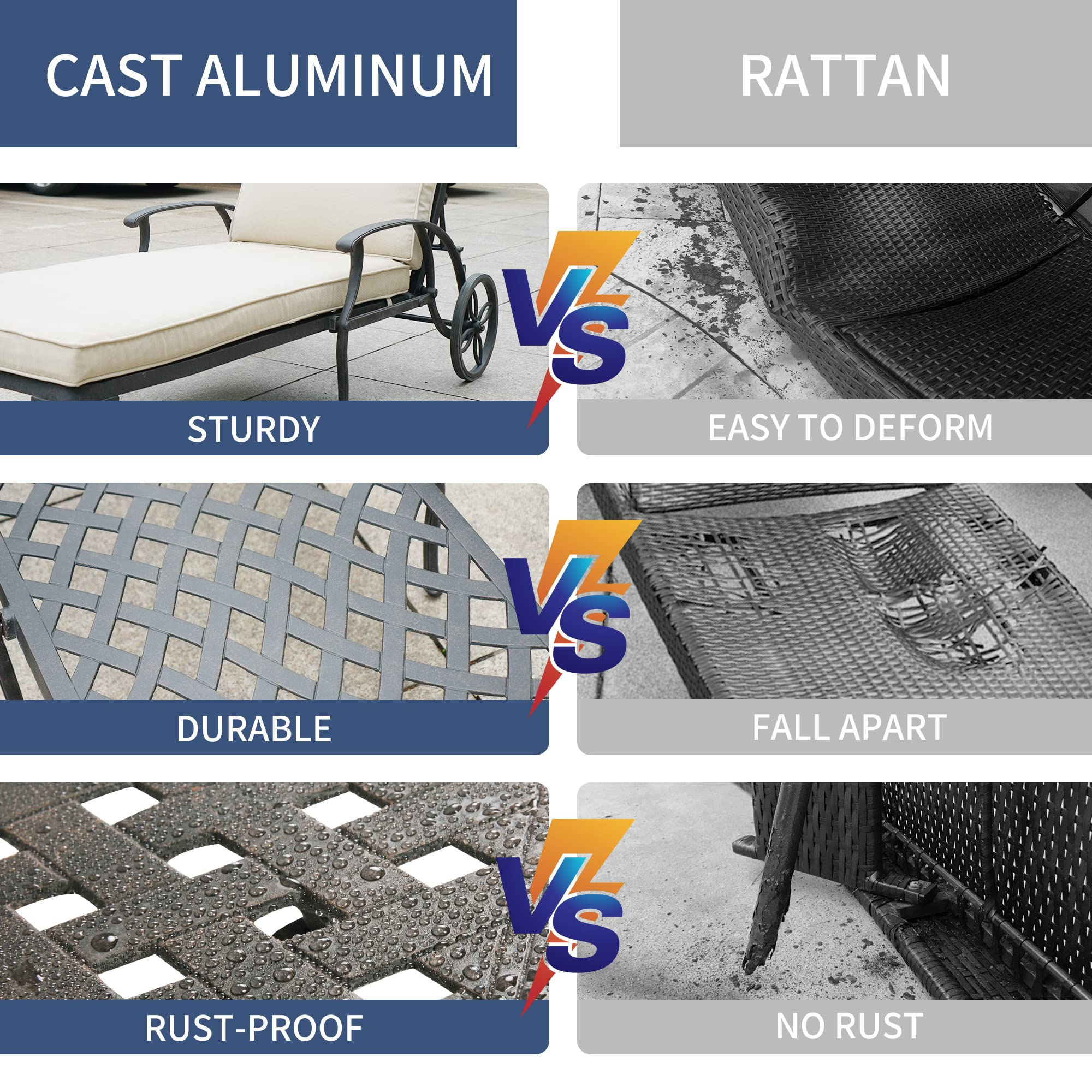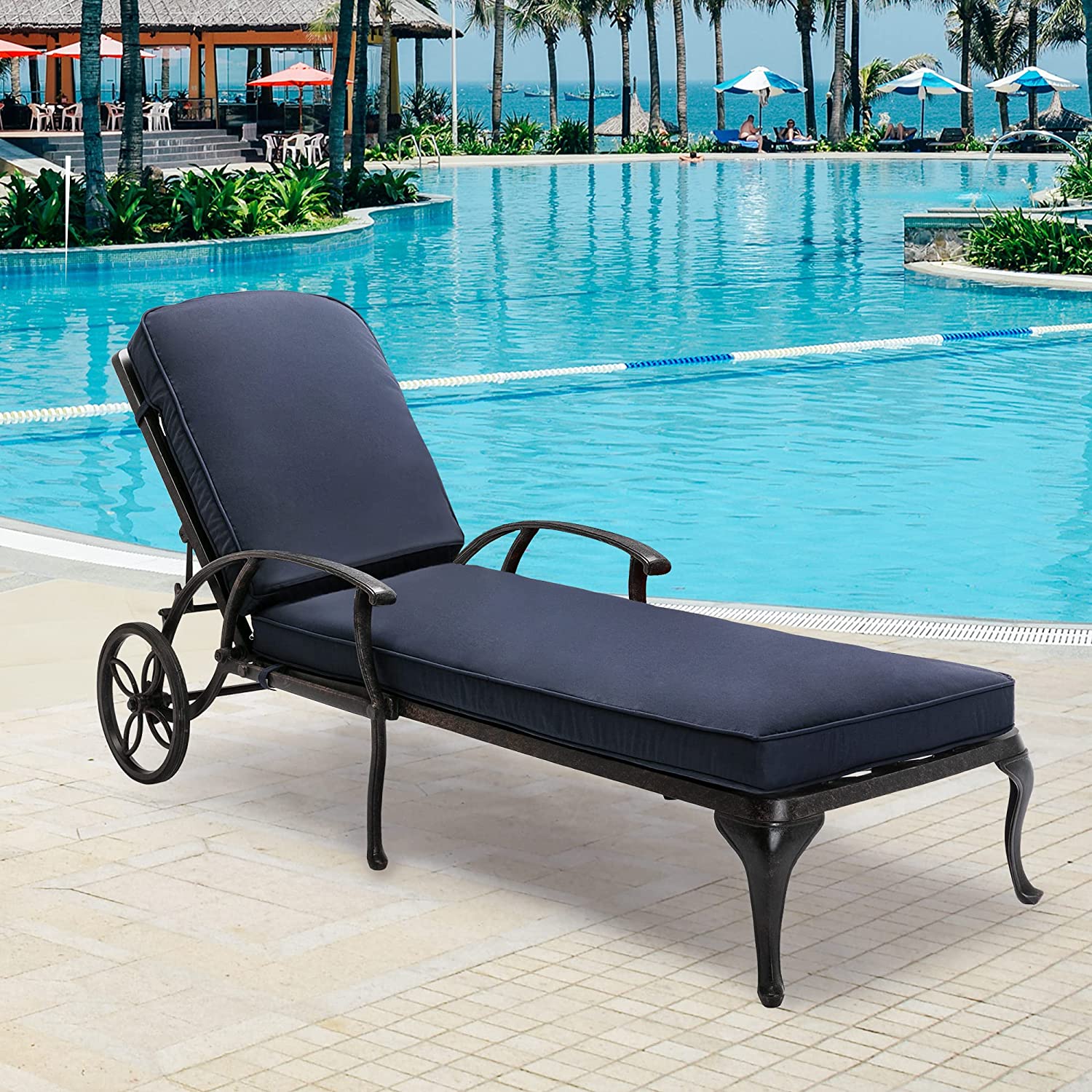 【Home&Garden】Chaise Lounge Outdoor Chair with Cushions, Aluminum Pool Side Sun Lounges with Wheels