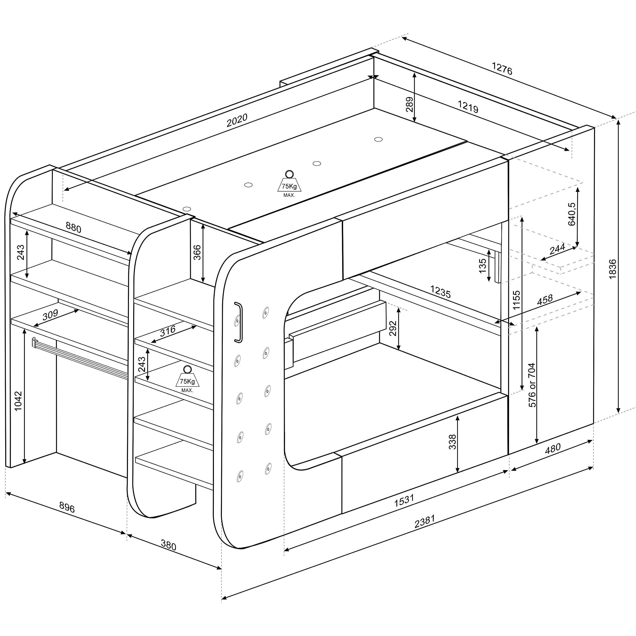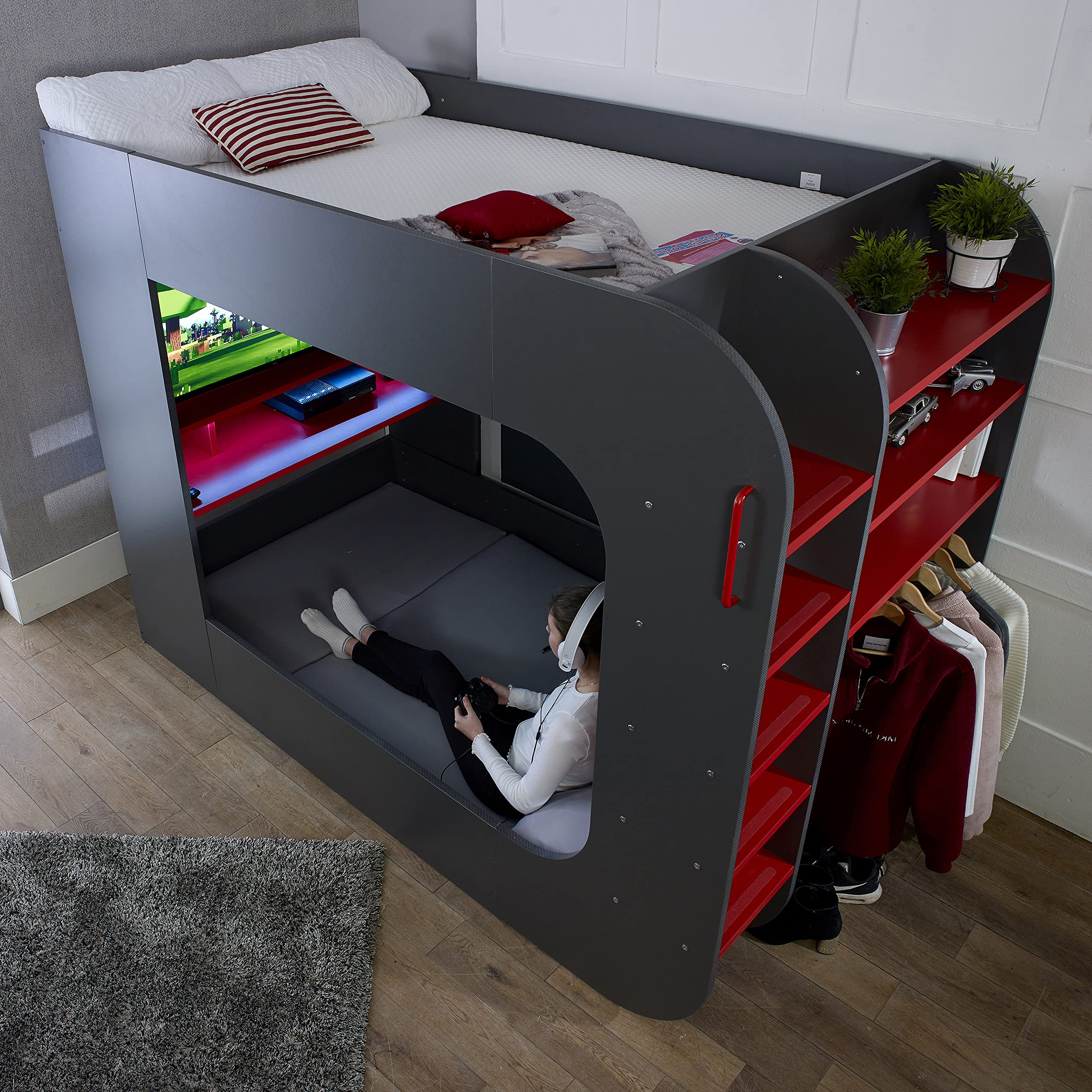 【Furniture】Wooden Bunk Bed with Underbed Storage Drawer, Modern Twin Sleeper with 2 Pocket Sprung Mattresses