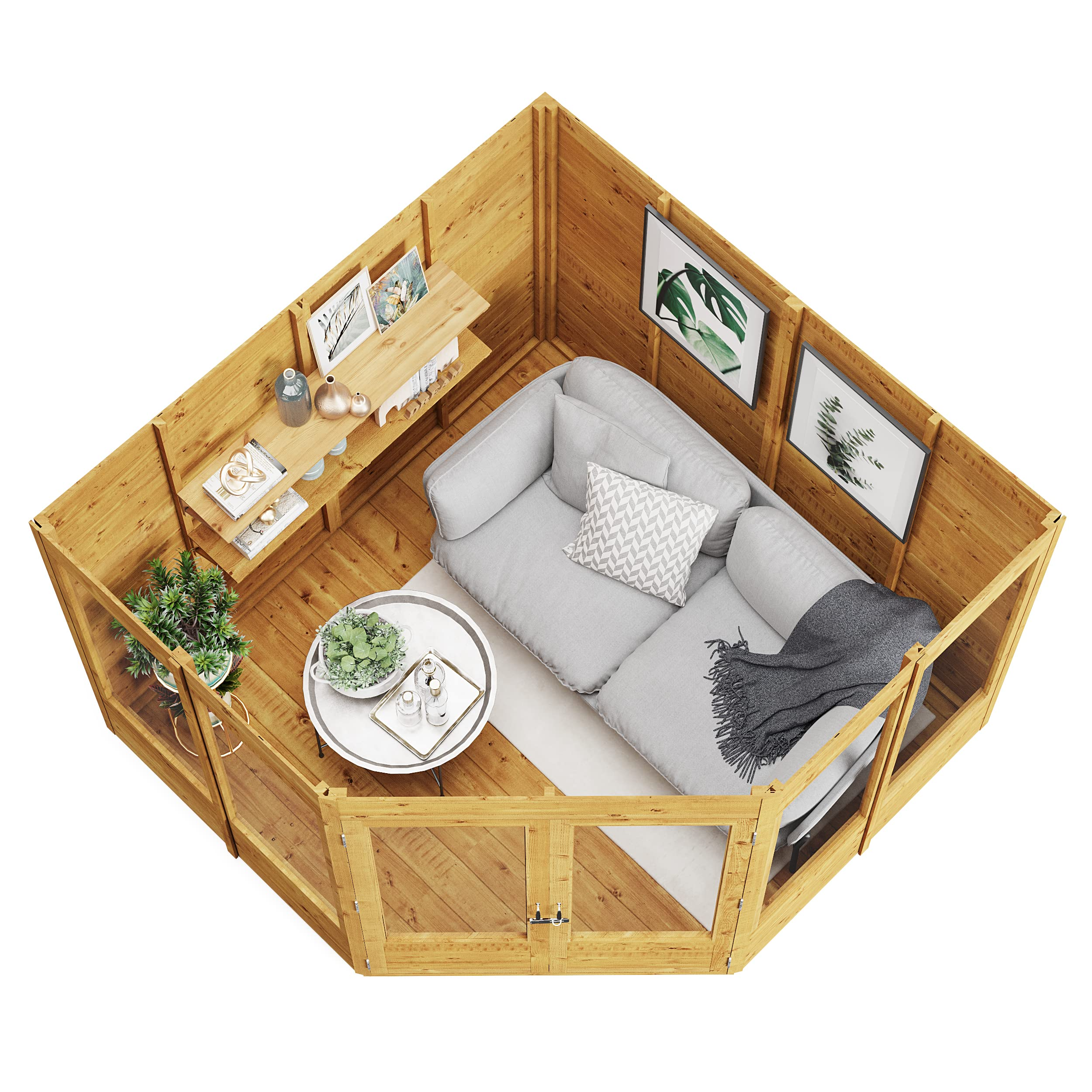 【Home&Garden】Corner Summerhouse Log Cabin 7 x 7 Garden Storage Shed Wooden Summer House Sheds
