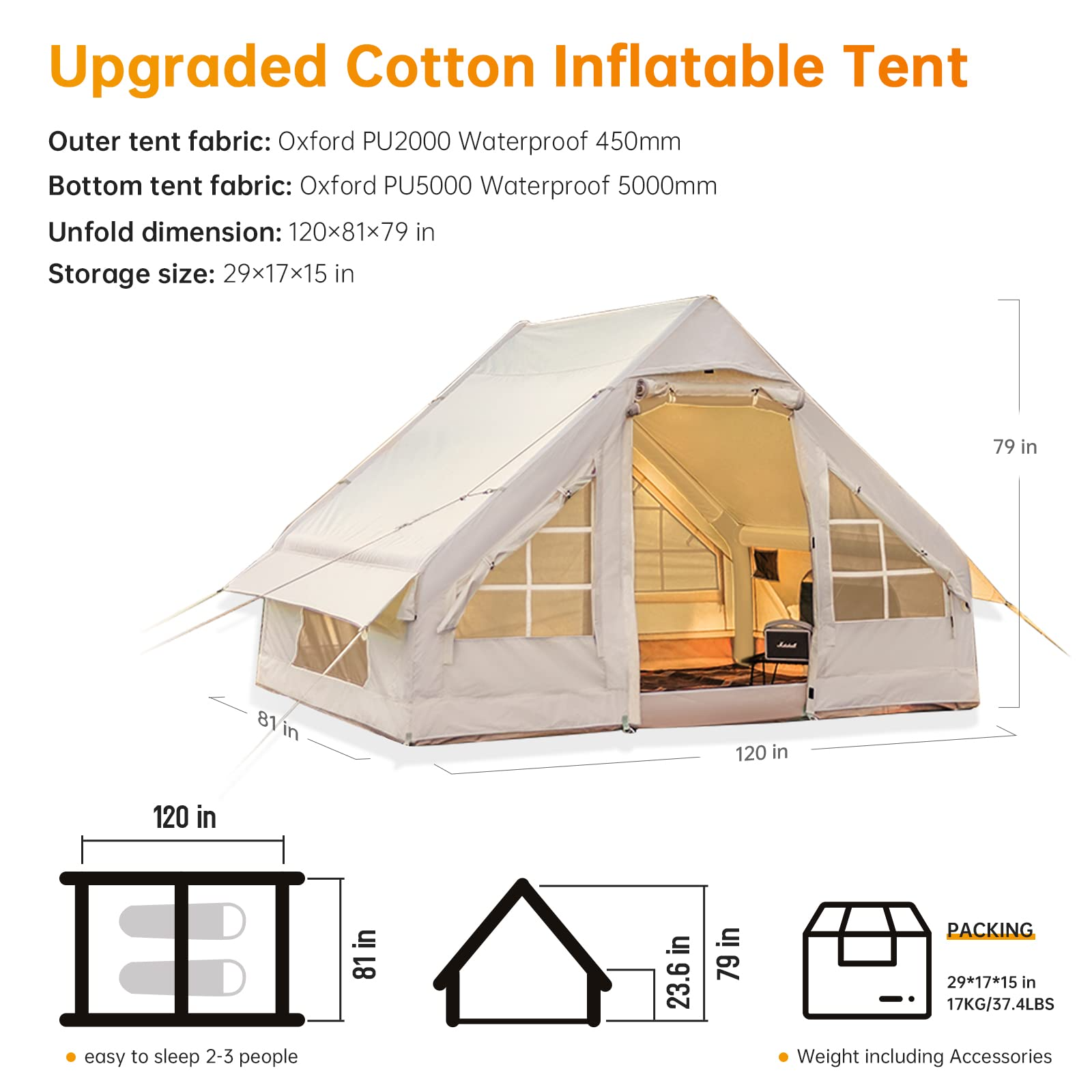 【Sports&Outdoors】6.3㎡ Inflatable Cotton Series Tent Portable Family People Outdoor Travel, 4-6 Person Large Tent