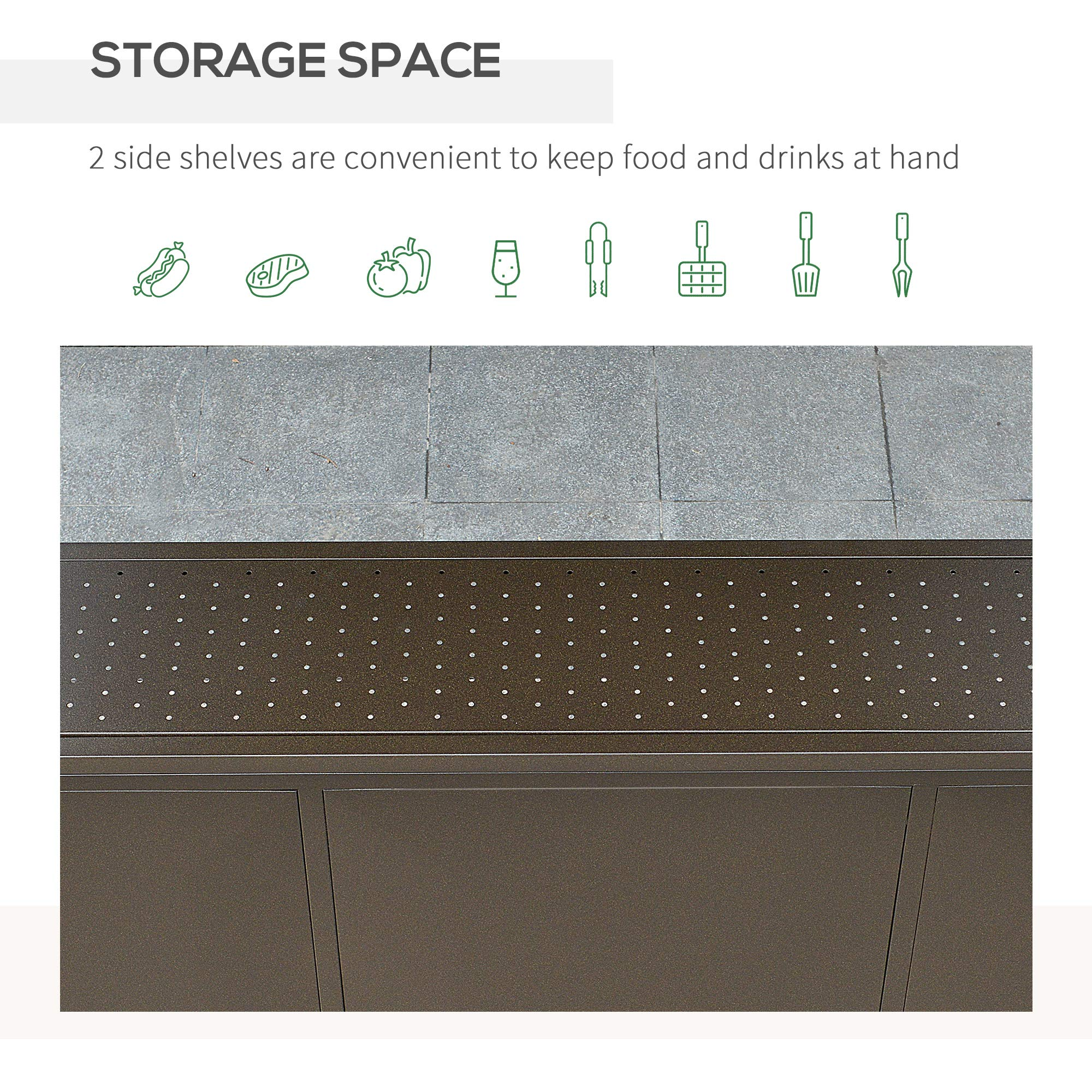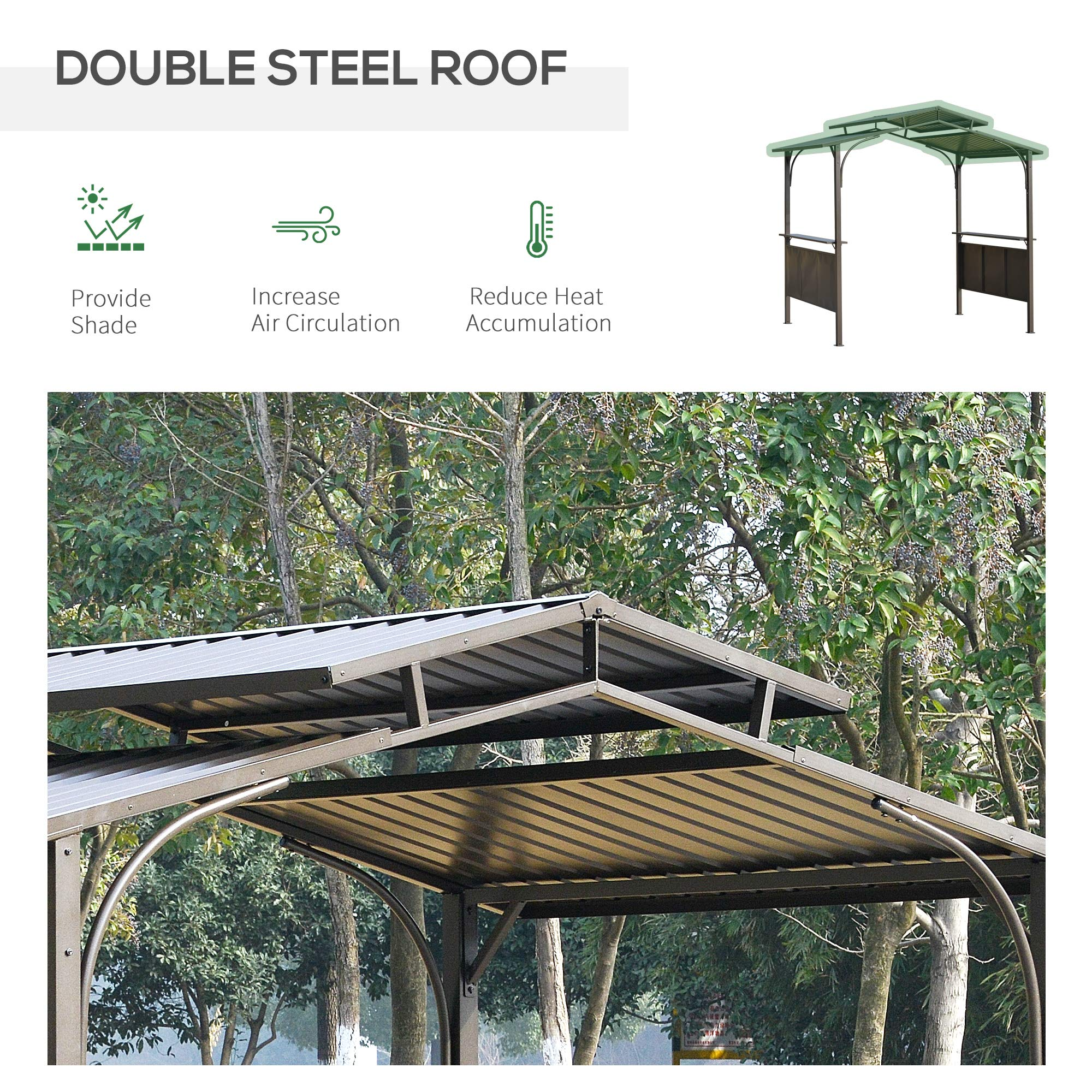 【Home&Garden】8'x5' BBQ Grill Gazebo with 2 Side Shelves, Outdoor Double Tiered Interlaced Polycarbonate Roof