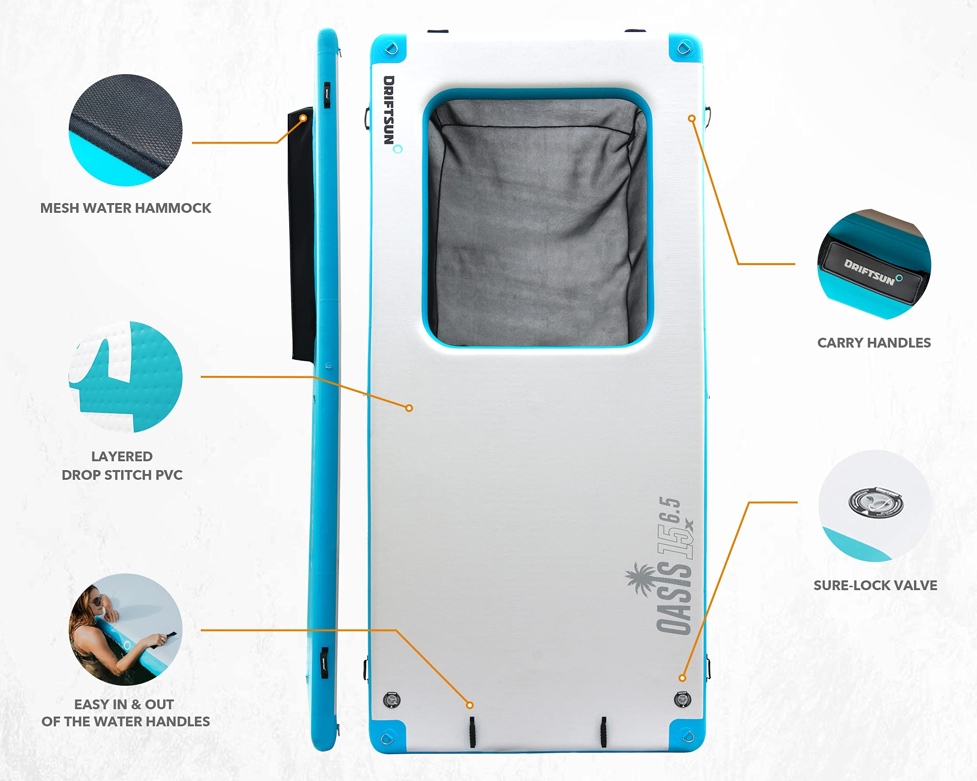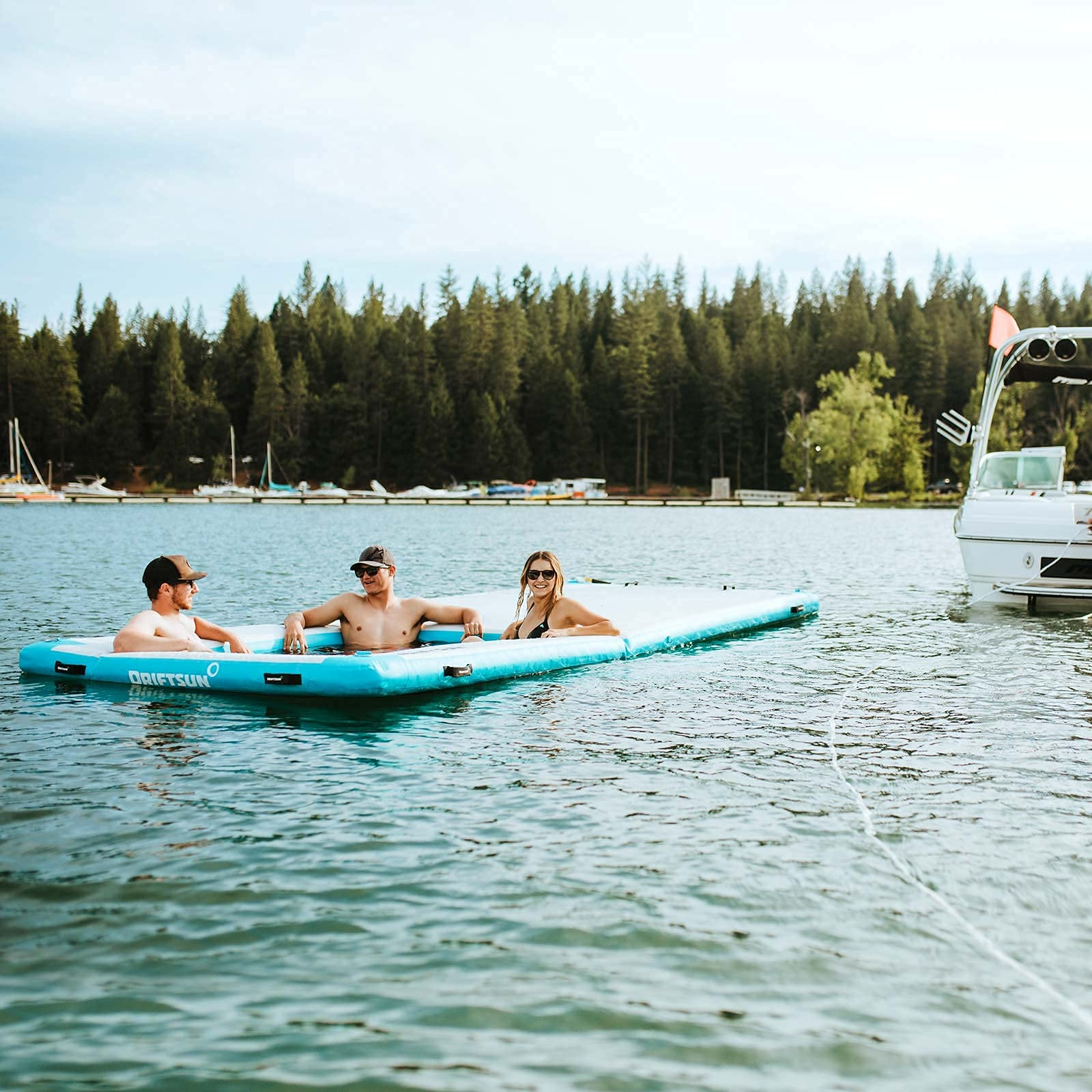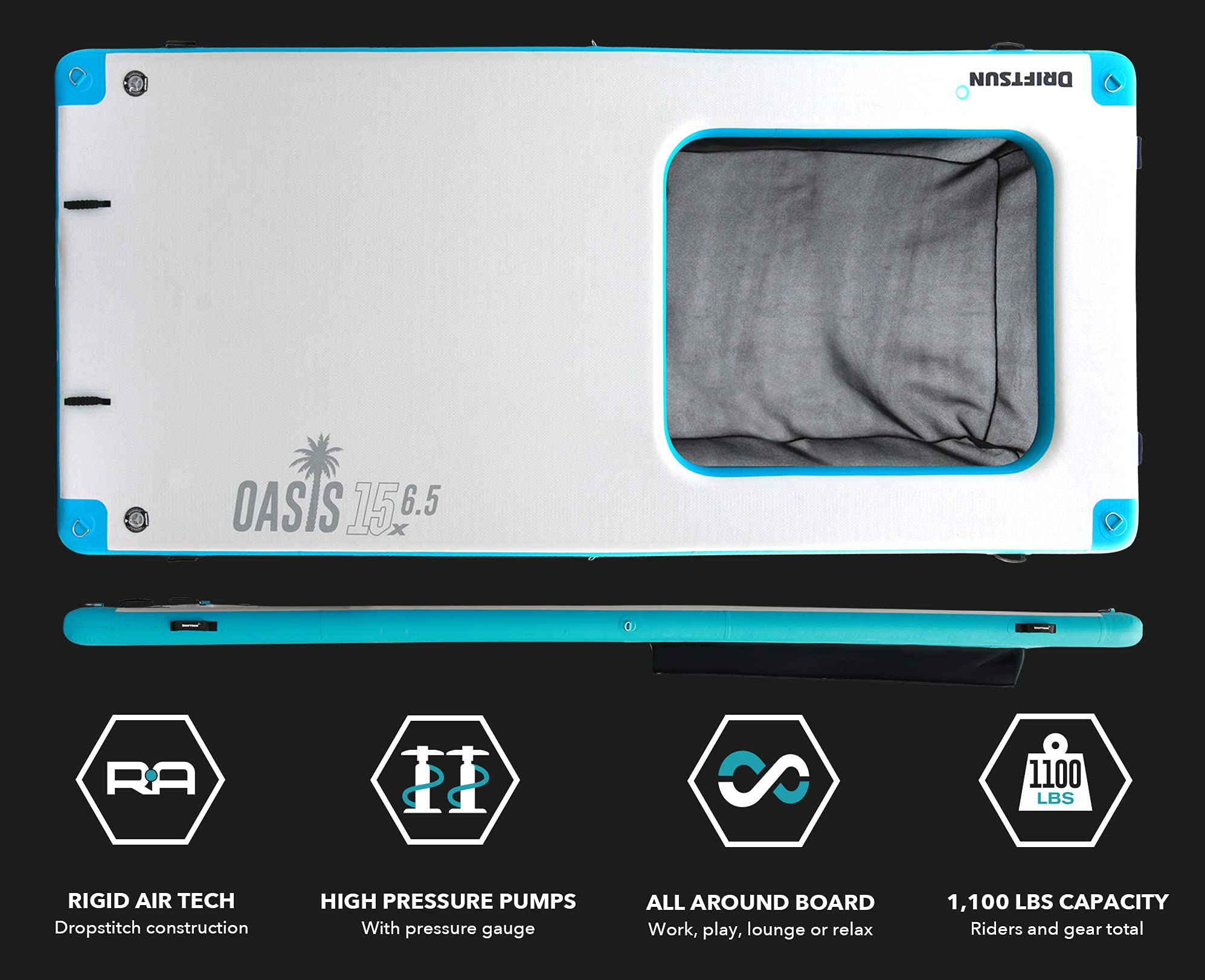【Sports&Outdoors】Inflatable Floating Dock Platform - 15x6.5ft Mesa Dock with Water Hammock, Floating Docks