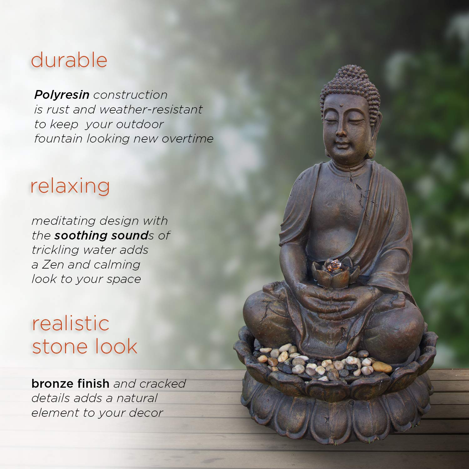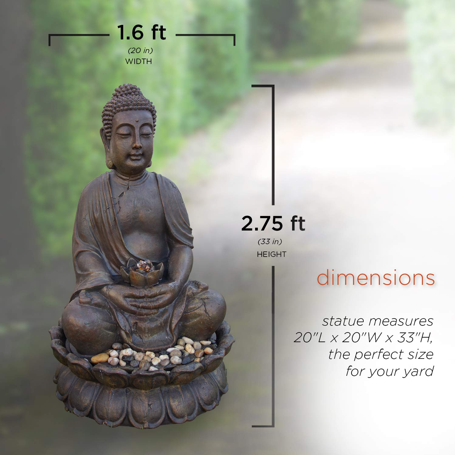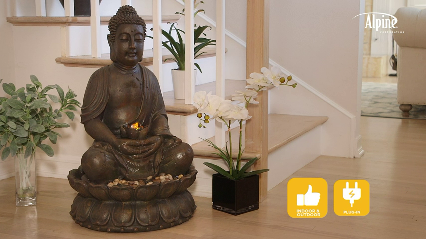 【Décor】33" Tall Indoor/Outdoor Meditating Buddha Water Fountain Yard Décor