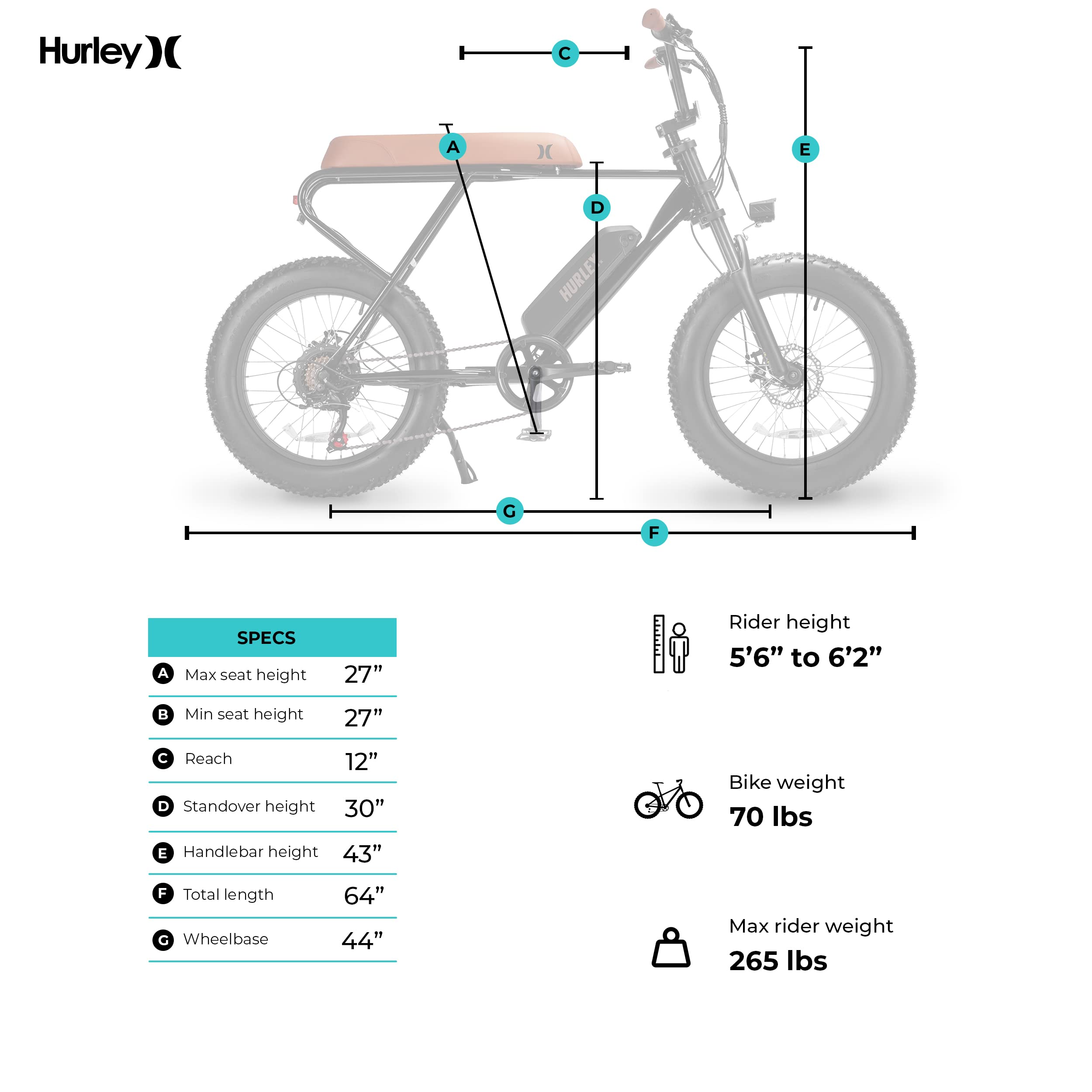 【Sports&Outdoors】Hurley Mini Swell Electric Bike, 4-Inch Wide Tires, Shimano 6-Speed E-Bike