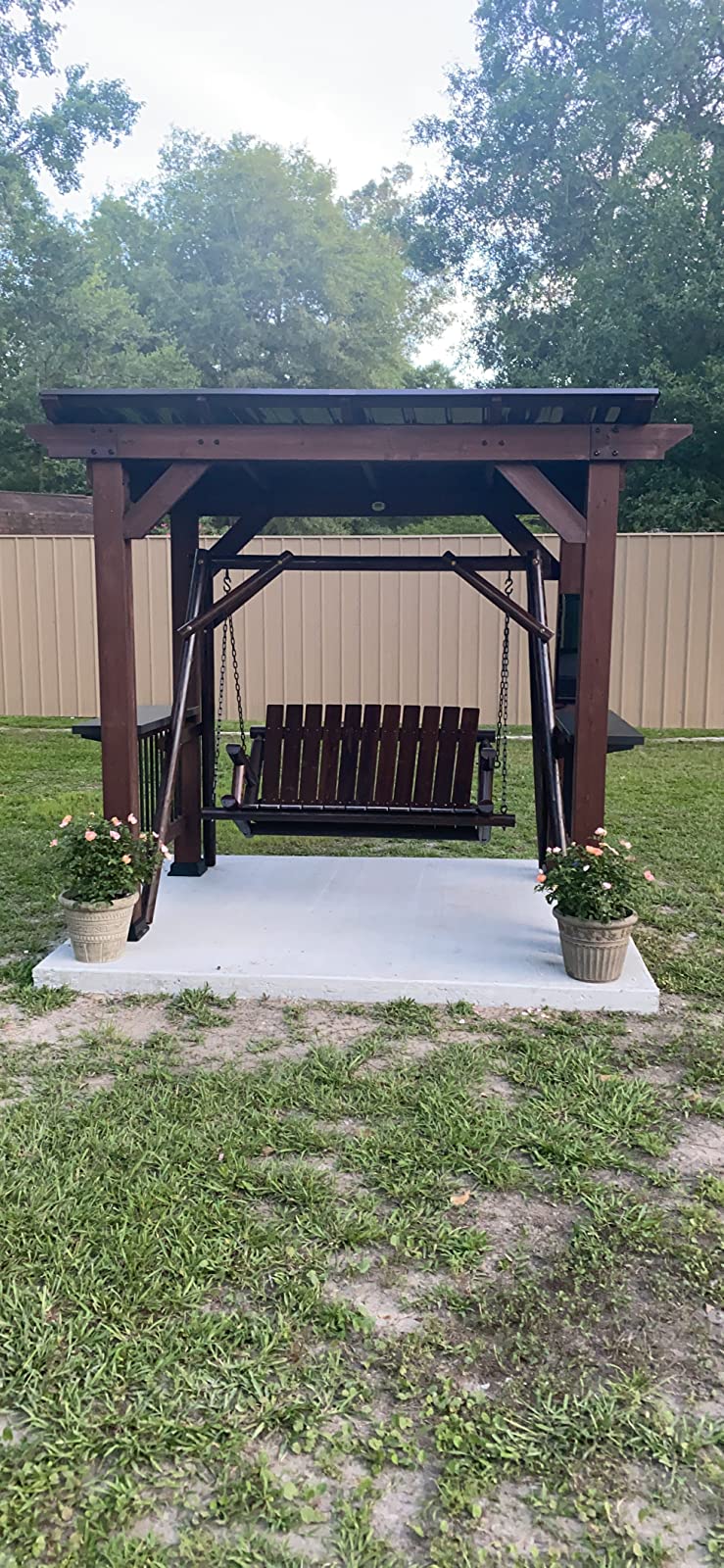 Amazing backyard addition. I purchased this to put on a concrete slab for a swing I got for Mother’s Day. Assemble was not too bad. Took about four hours my hubby had assistance from two friends. Keep in mind to anchor it to a slab you’ll have to buy concrete anchors and a drill bit. Love it. Highly recommend it! Very stable product and I did purchase this product before the price increase!